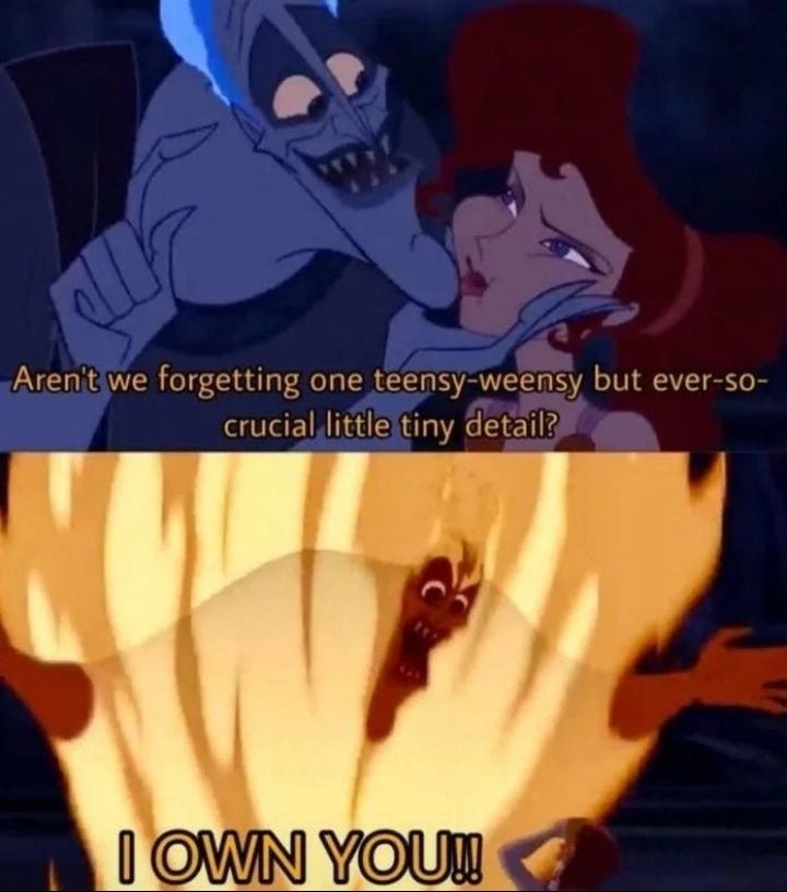 Sometimes I really do want to just pull her in close to me and force her to accept my love. It reminds me of that scene from Hercules: